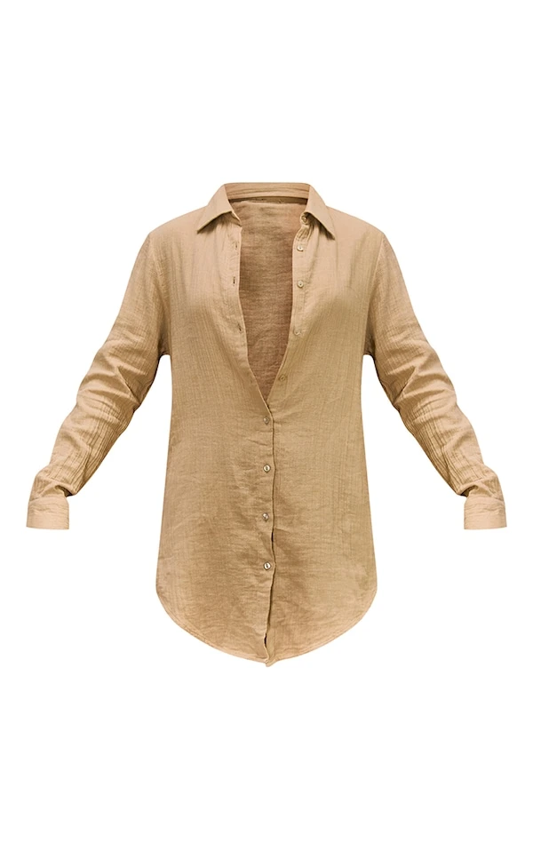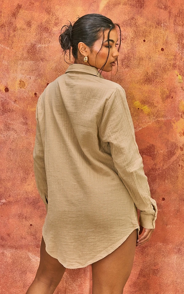 Robe chemise de plage oversize crêpée douce gris pierre