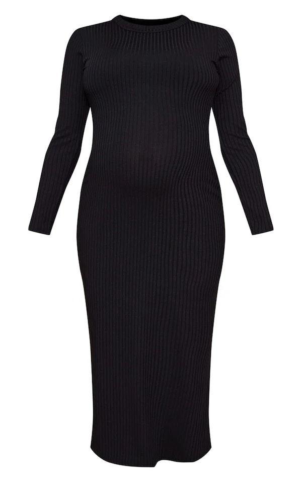 Maternité Robe de grossesse mi-longue côtelée noir foncé à manches longues