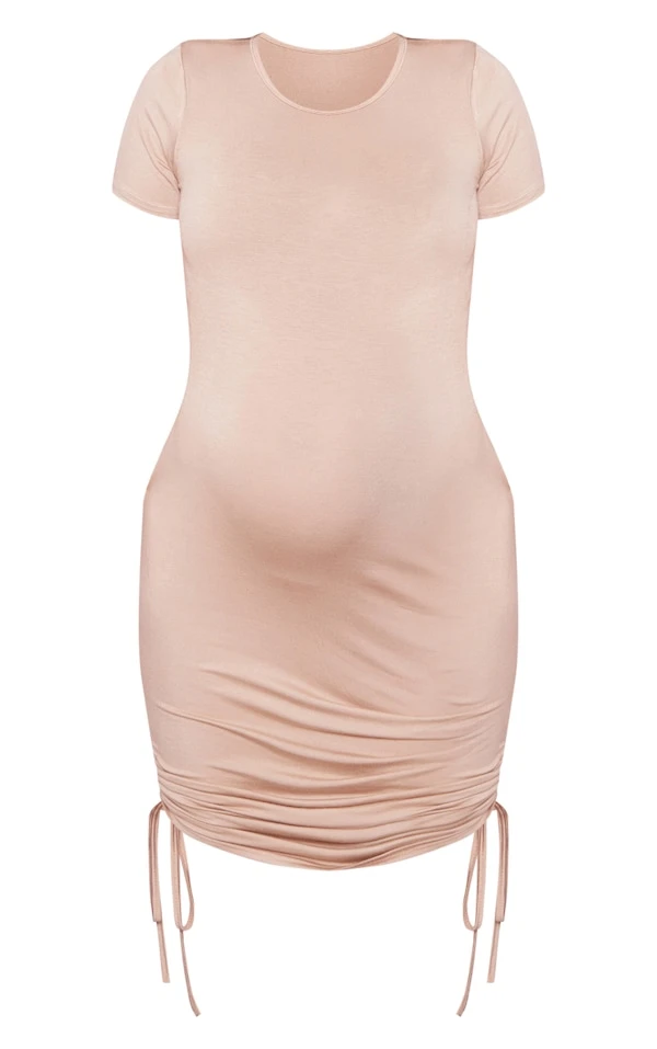 Maternité Robe t-shirt de grossesse gris pierre à côtés froncés