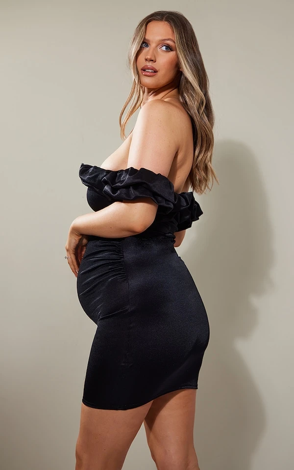 Maternité Mini robe de grossesse ajustée noire métalissée à fronces