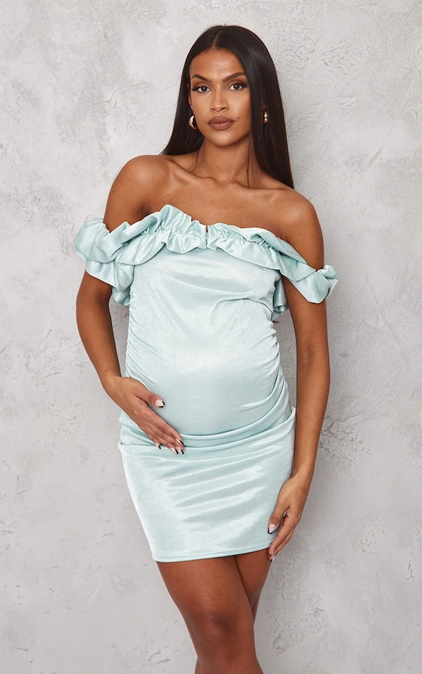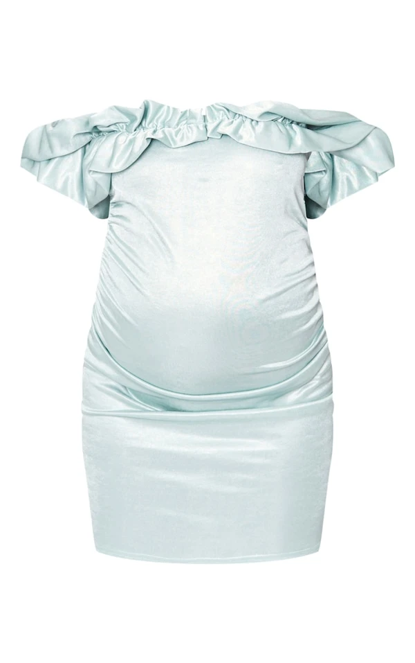 Maternité Mini robe de grossesse ajustée verte métalissée à fronces