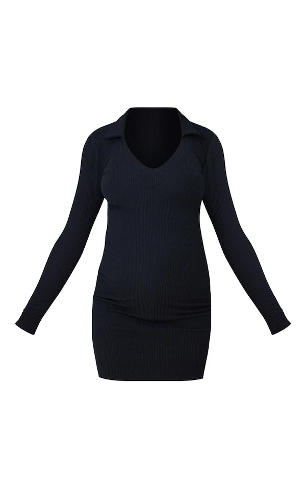 Maternité Mini-robe de grossesse noire à col polo et décolleté plongeant
