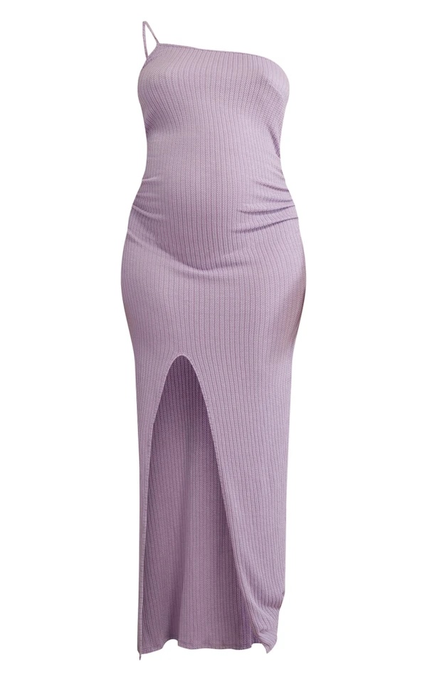 Maternité Robe de grossesse longue asymétrique texturée lilas