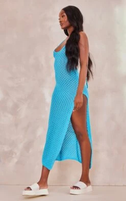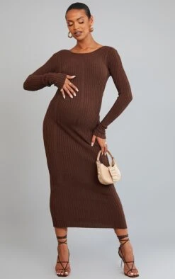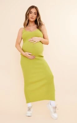Maternité Robe de grossesse longue en maille tricot vert olive à bretelles