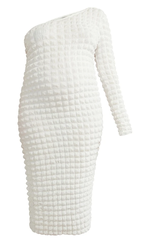 Maternité Robe de grossesse mi-longue asymétrique blanche en maille bulle texturée