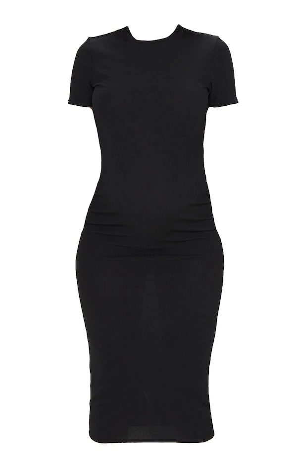 Maternité Robe de grossesse mi-longue noire côtelée à col ras-du-cou