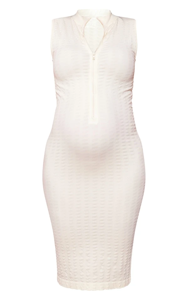 Maternité Robe de grossesse mi-longue texturée beige à contours côtelés