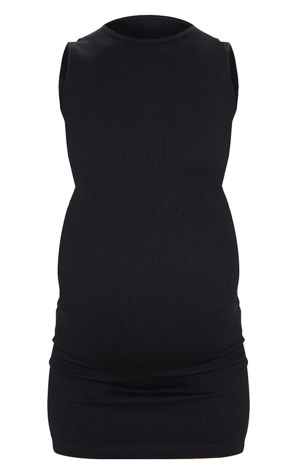Maternité Robe de grossesse moulante noire à dos nageur et détail contours