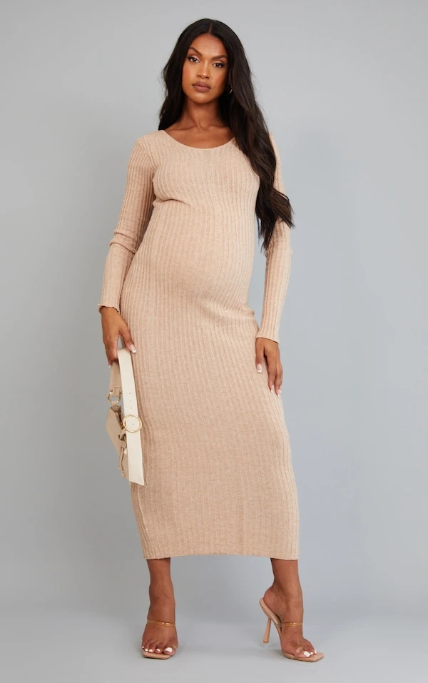 Divine dans le coloris avoine de cette robe de grossesse moulante à la coupe longue. Avec sa matière en maille tricot côtelée et son design noué dans le dos nu, on l’adore. Pour afficher un look de femme enceinte sans faille, elle est parfaite !