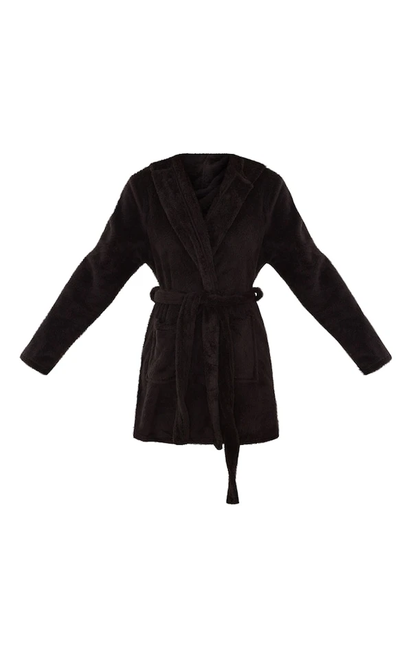 PRETTYLITTLETHING Robe de chambre noire duveteuse à capuche