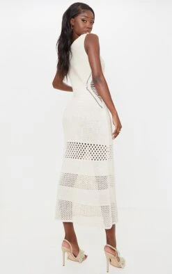 Maternité Robe De Grossesse Longue En Maille Crochet Crème Ajourée Sur Les Côtés