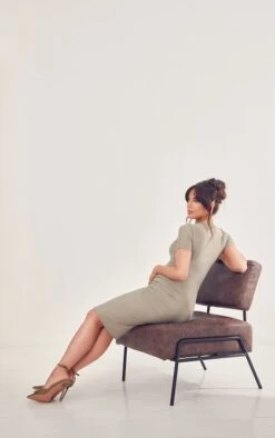 Maternité Robe De Grossesse Longue Taupe Sculpt Mat à Manches Courtes