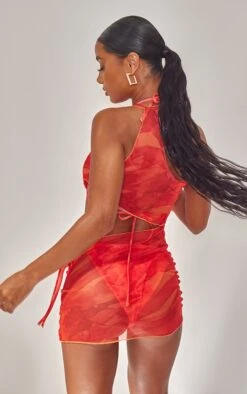 Mini Robe De Plage En Mesh Orange Vif Javélisé à Découpes