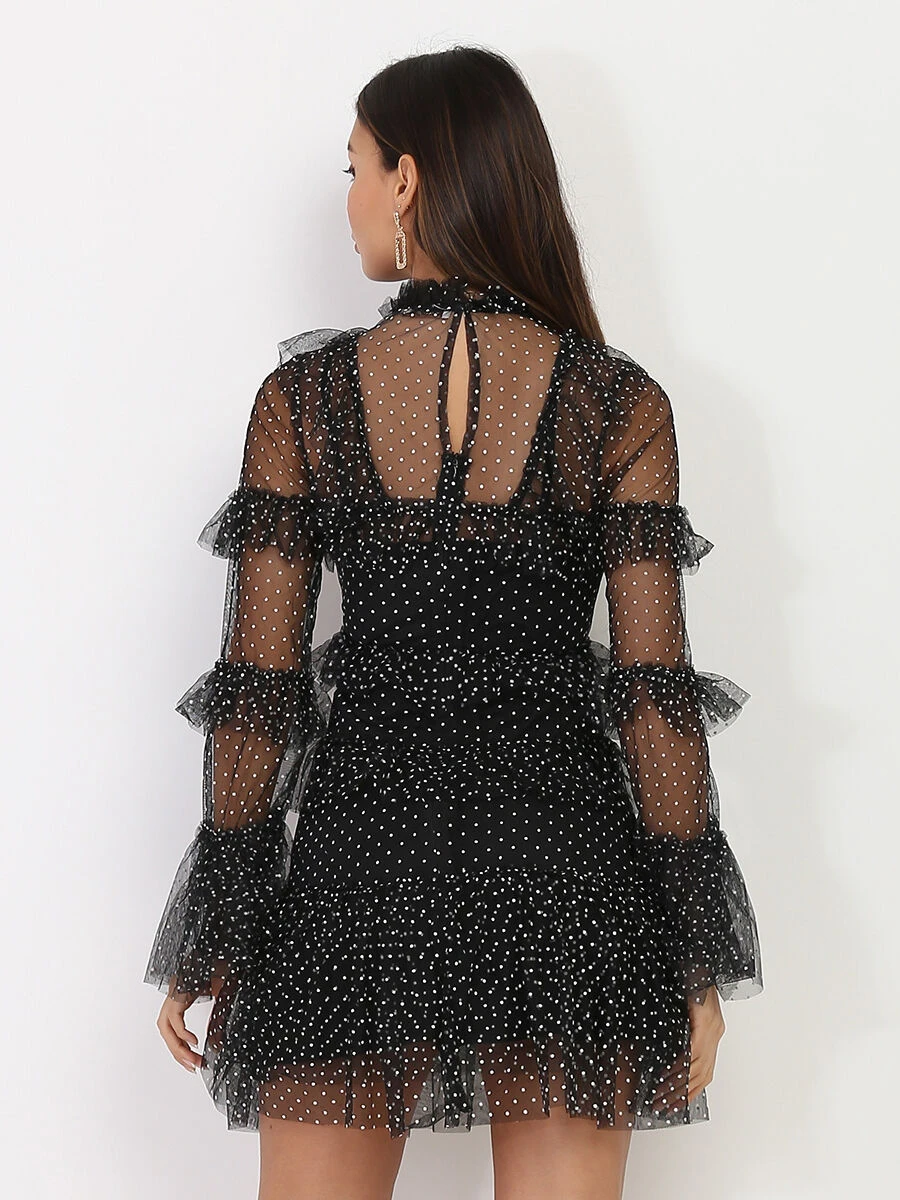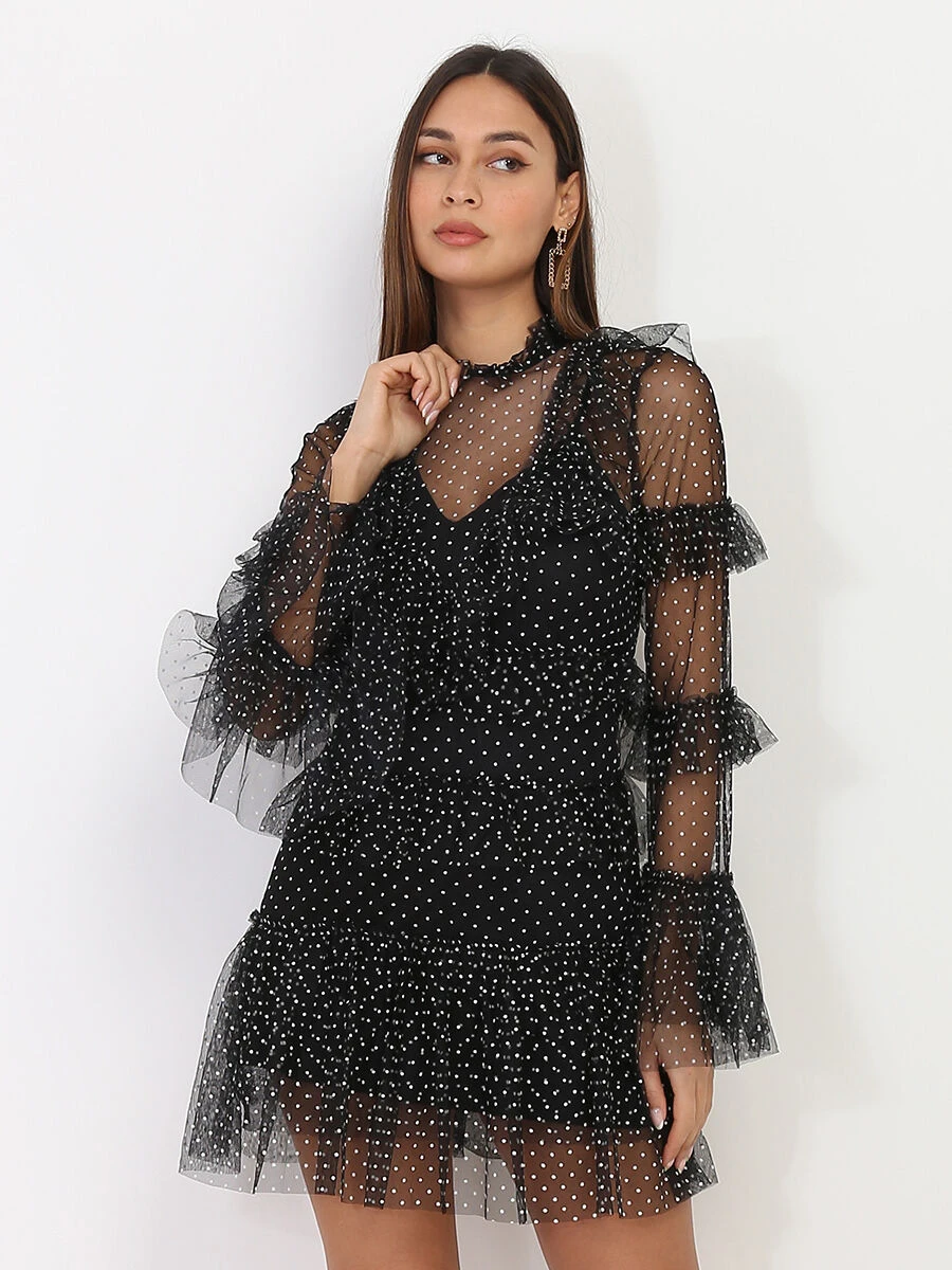 Robe courte et fluide en tulle avec volants.
