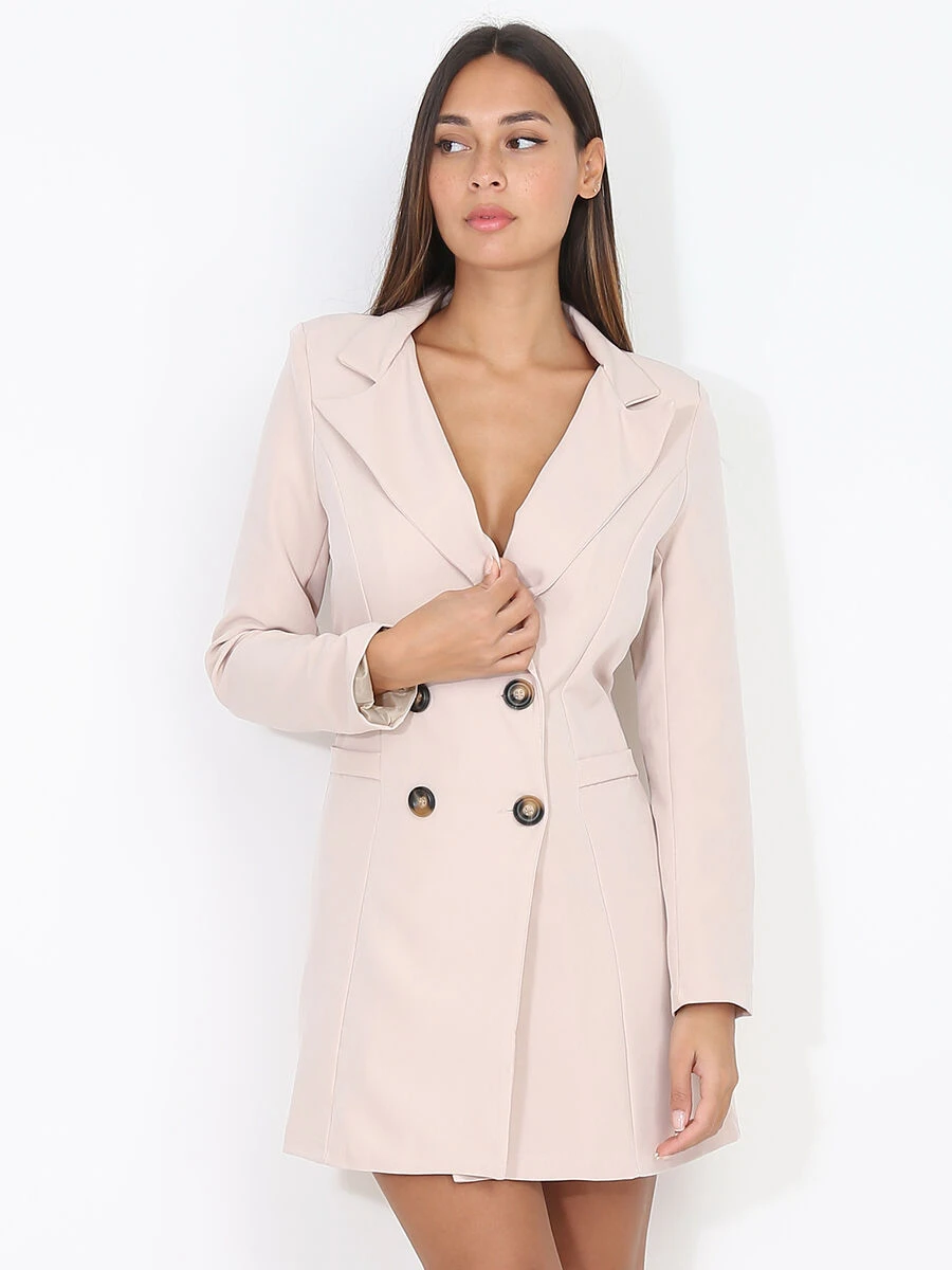 Robe blazer cintrée et boutonnée avec col à revers.