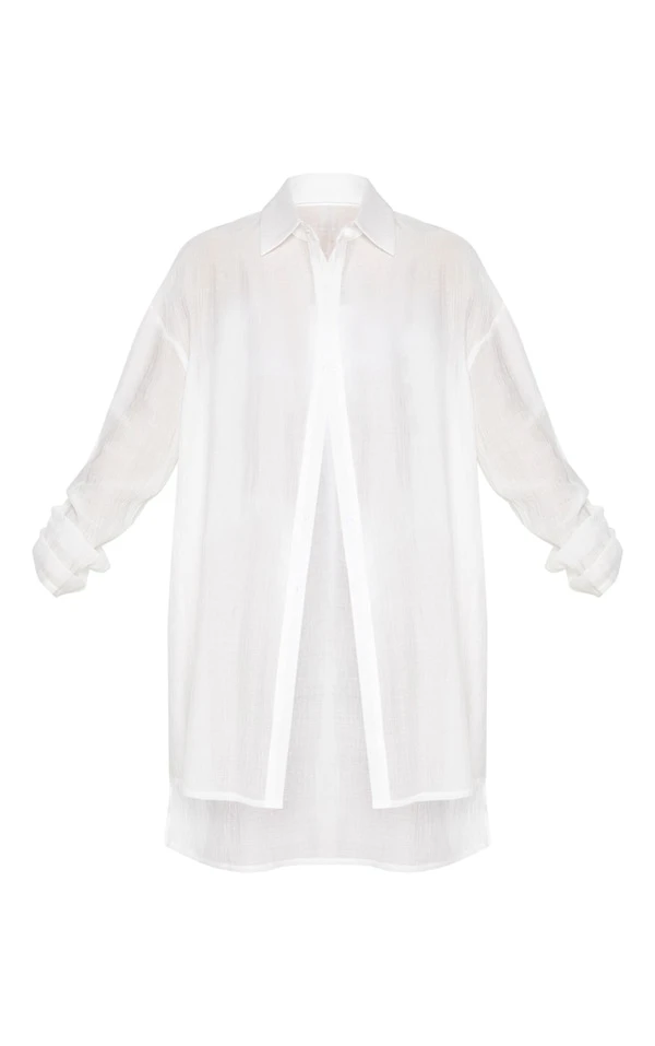 Robe chemise de plage oversize en lin écrue