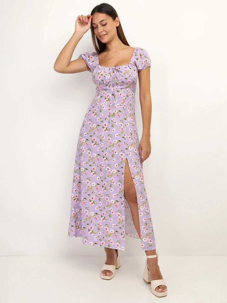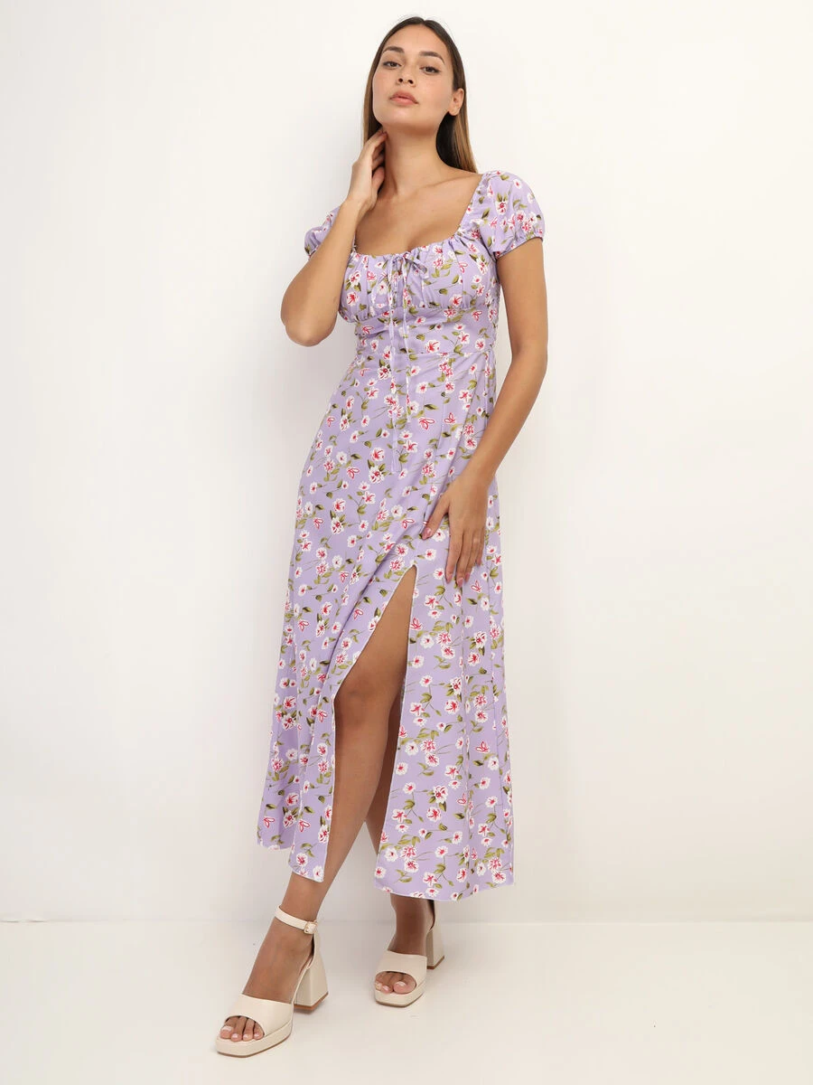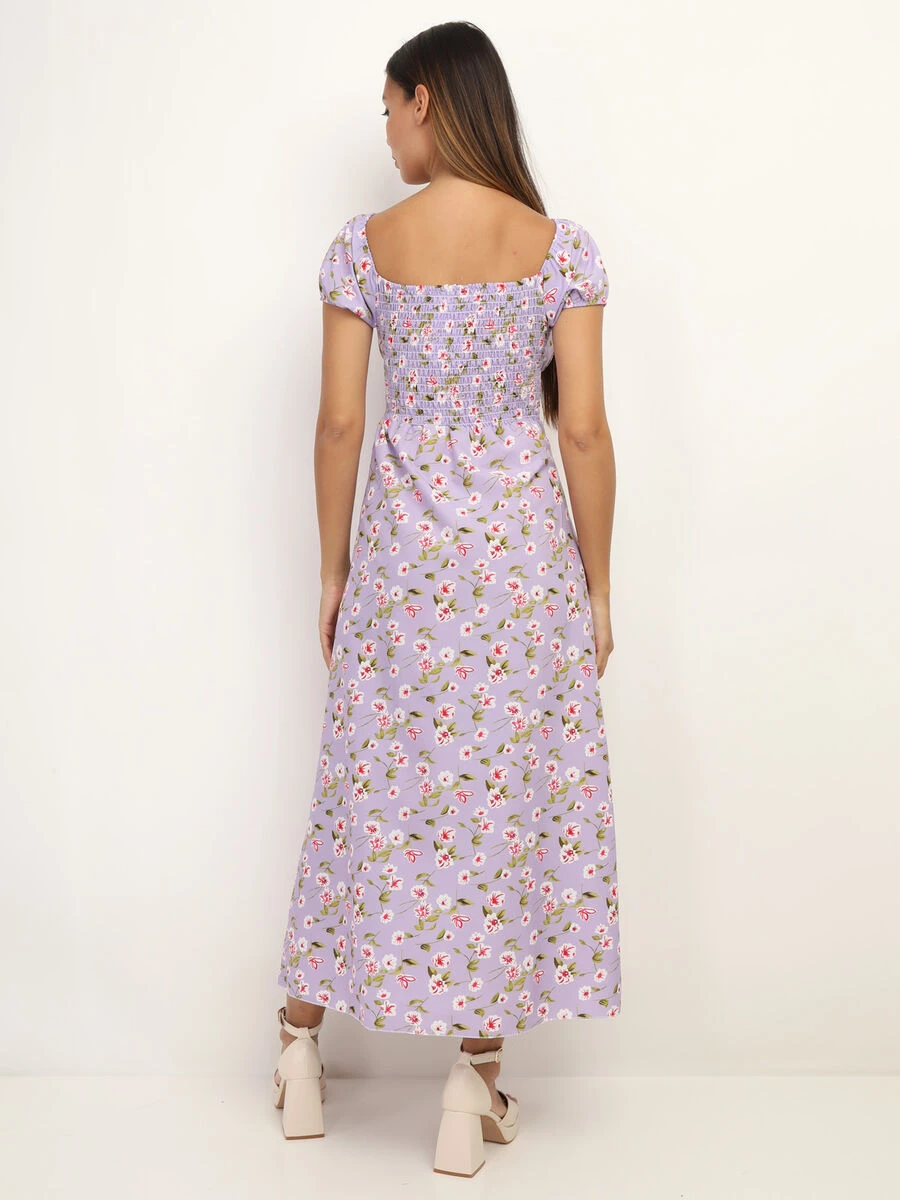 Robe corset fendue à imprimé fleurs avec dos smocké.