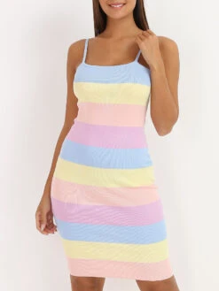 Robe côtelée à rayures arc-en-ciel.