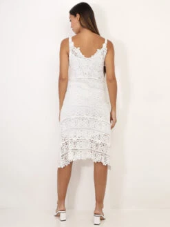 Robe moulante en maille côtelée à boutons métalliques dorés.