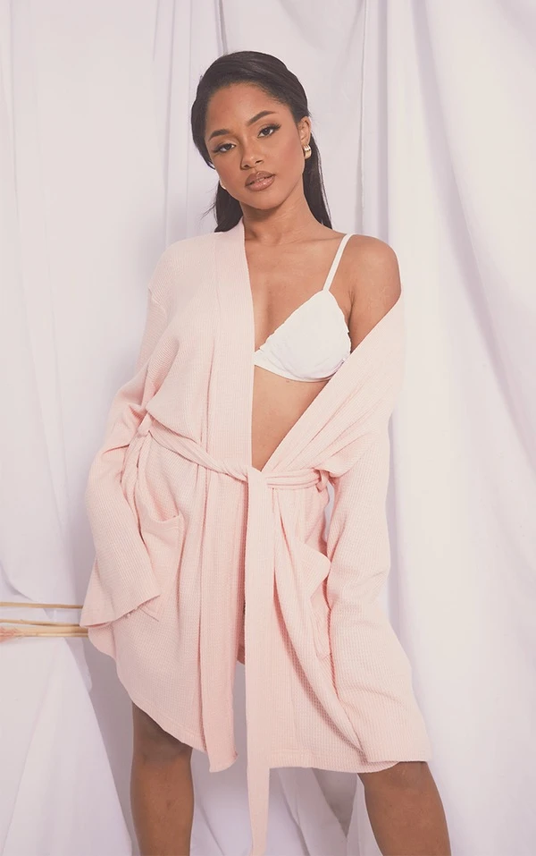 La robe de chambre qu’on ne veut plus quitter de la journée! Avec sa maille gaufrée toute douce, sa couleur rose et son design classique, c’est impossible de résister. On la porte du matin au soir, pour les jours off!