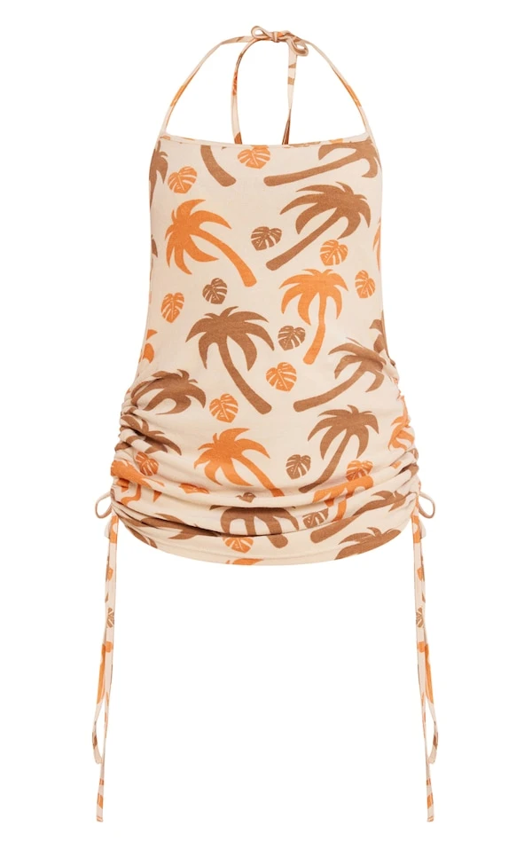 Robe de plage en éponge imprimé feuilles crème à dos ouvert