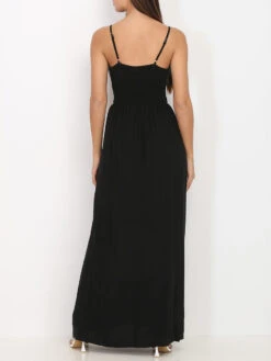 Robe longue drapée élastiquée à la taille avec fermeture zippée invisible.