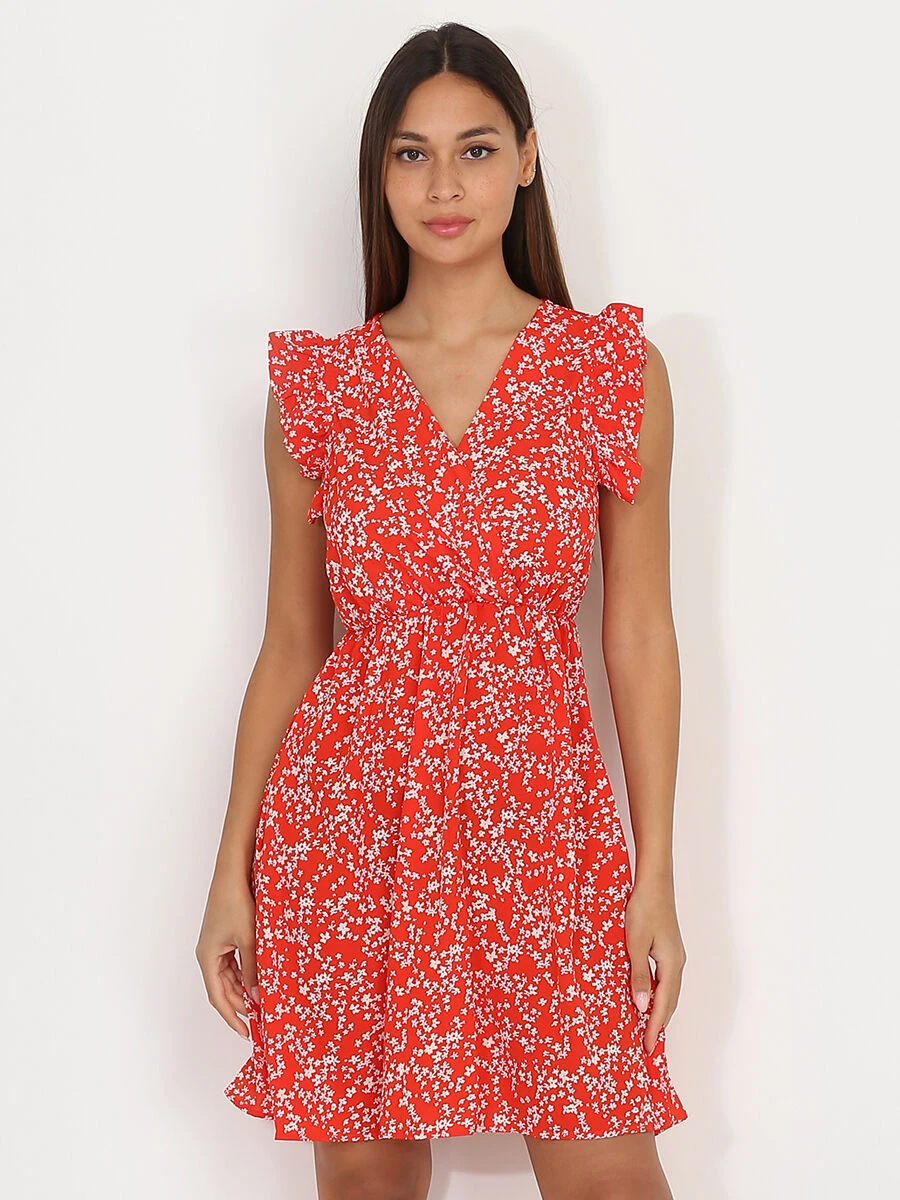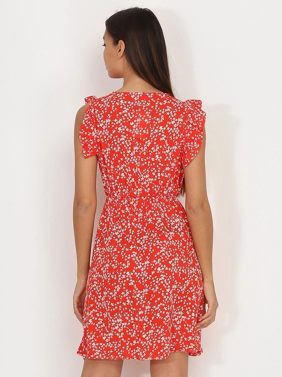 Robe évasée fluide à fleurs avec volants sur les emmanchures.