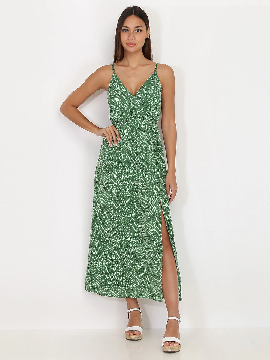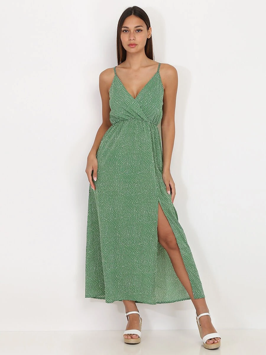Robe à pois avec fente.