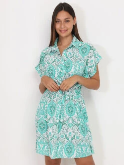 Dotée d’un élastique à la taille et de liens intégrés à nouer devant.