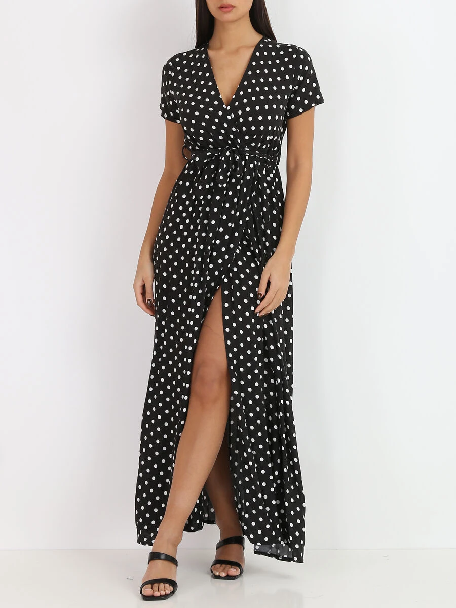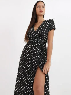 On craque totalement pour cette robe à pois qui dévoile discrètement nos jambes !