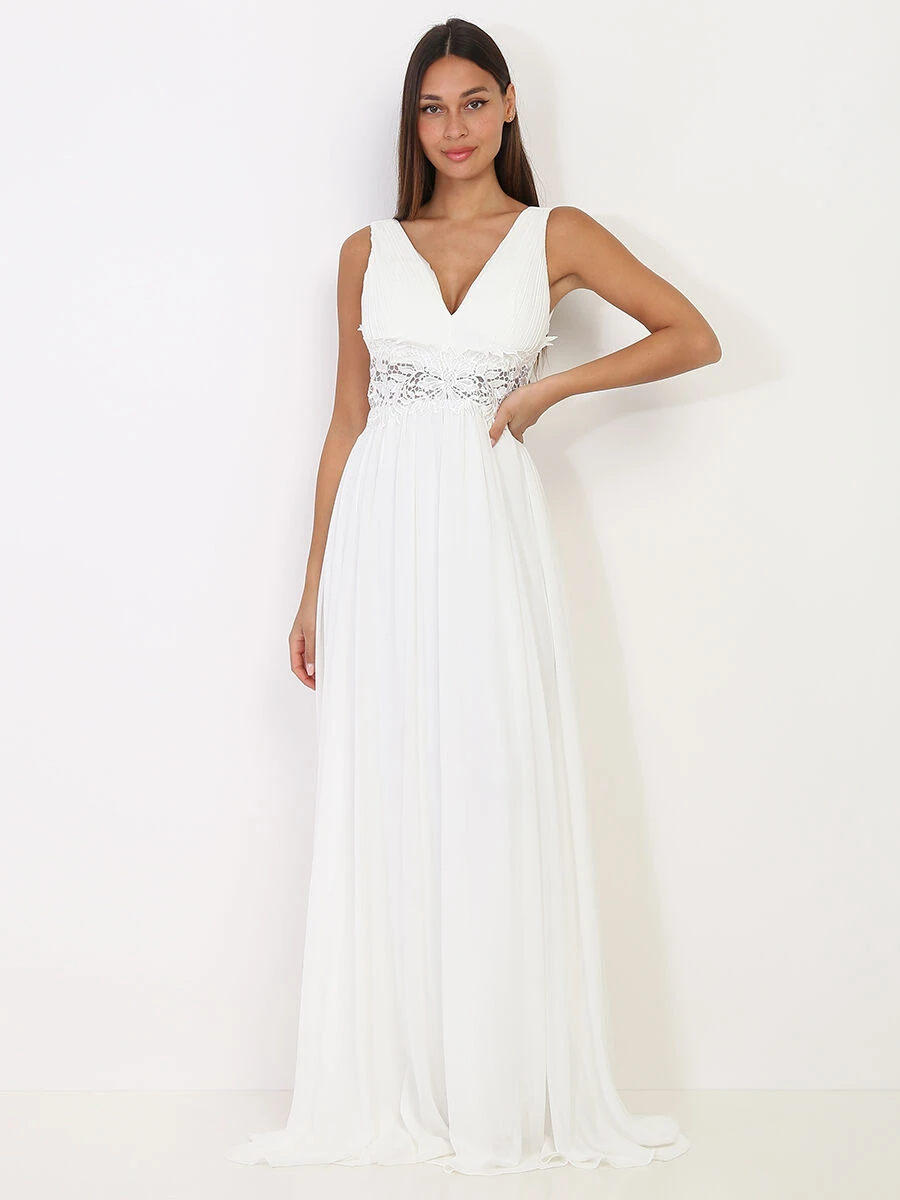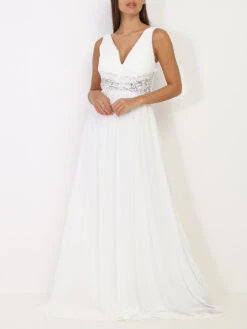 Dotée d’un effet drapé sur le buste et de dentelle sur la taille.
