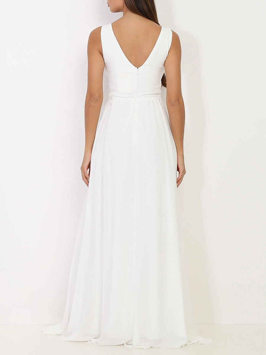 Modèle avec fermeture à glissière dans le dos et doublure satinée.