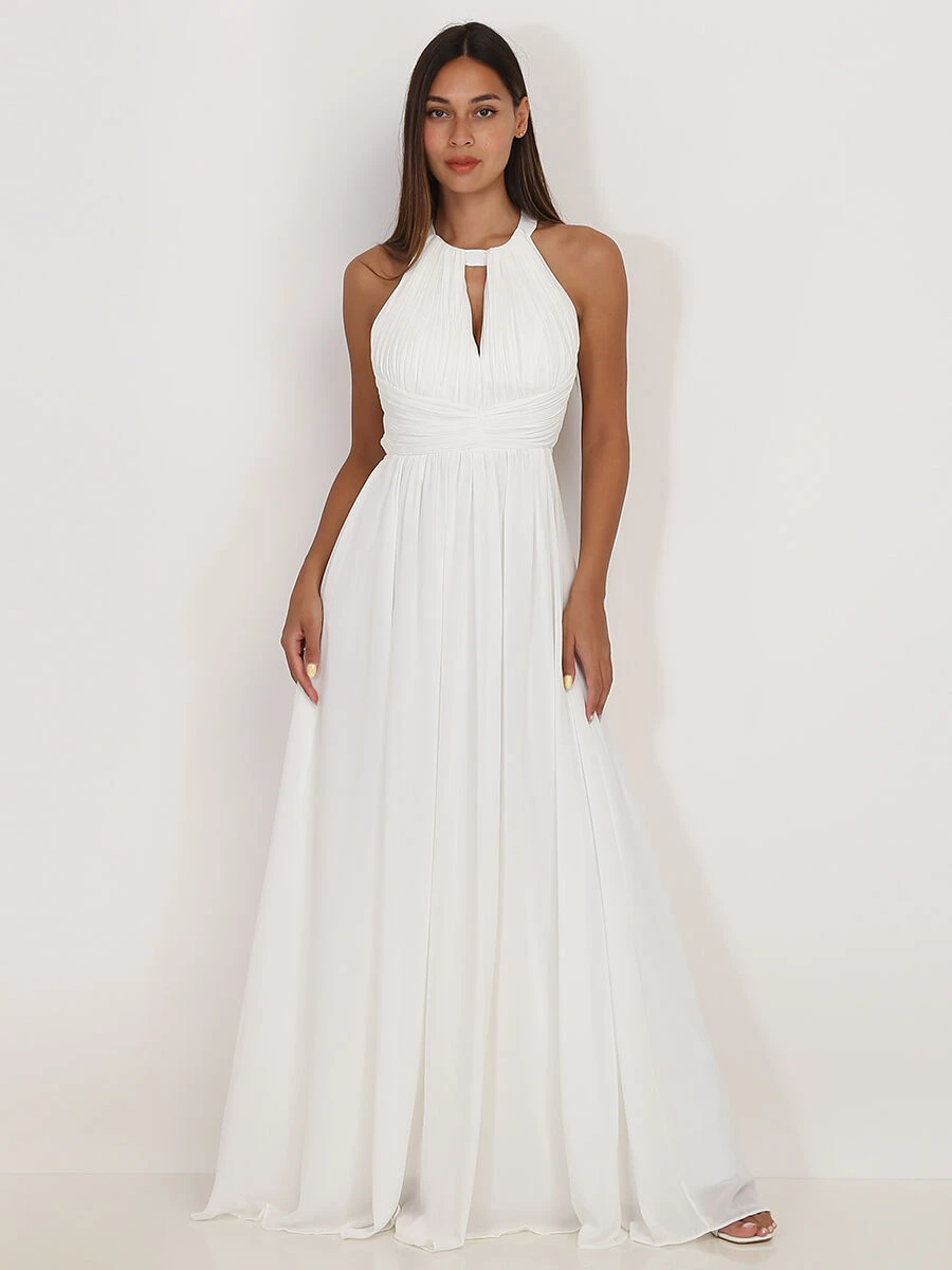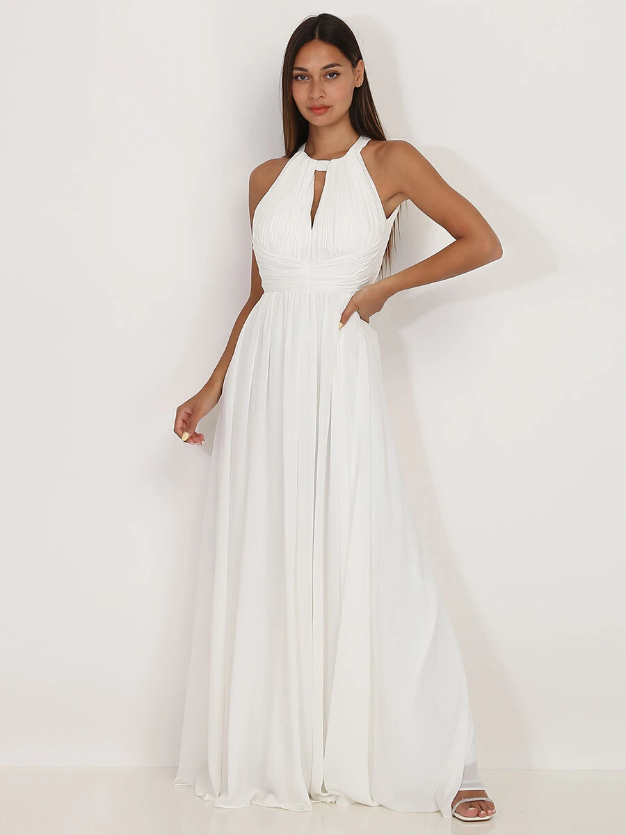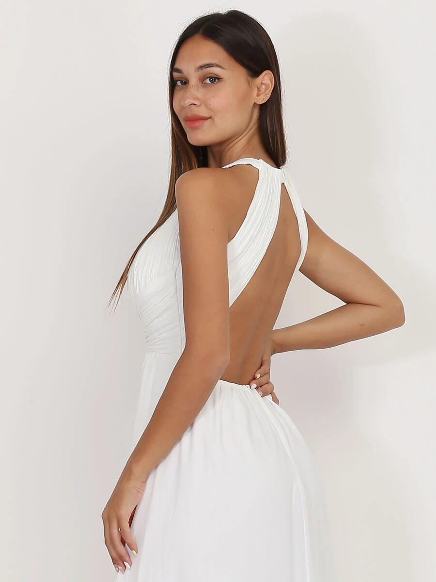 Robe longue à col rond drapé ajouré en V sur le buste.