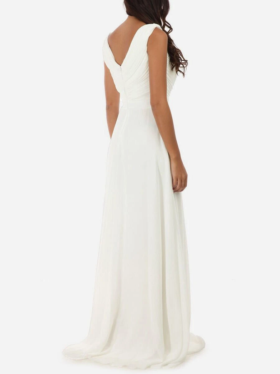Robe de soirée longue avec grande fente sur le devant.