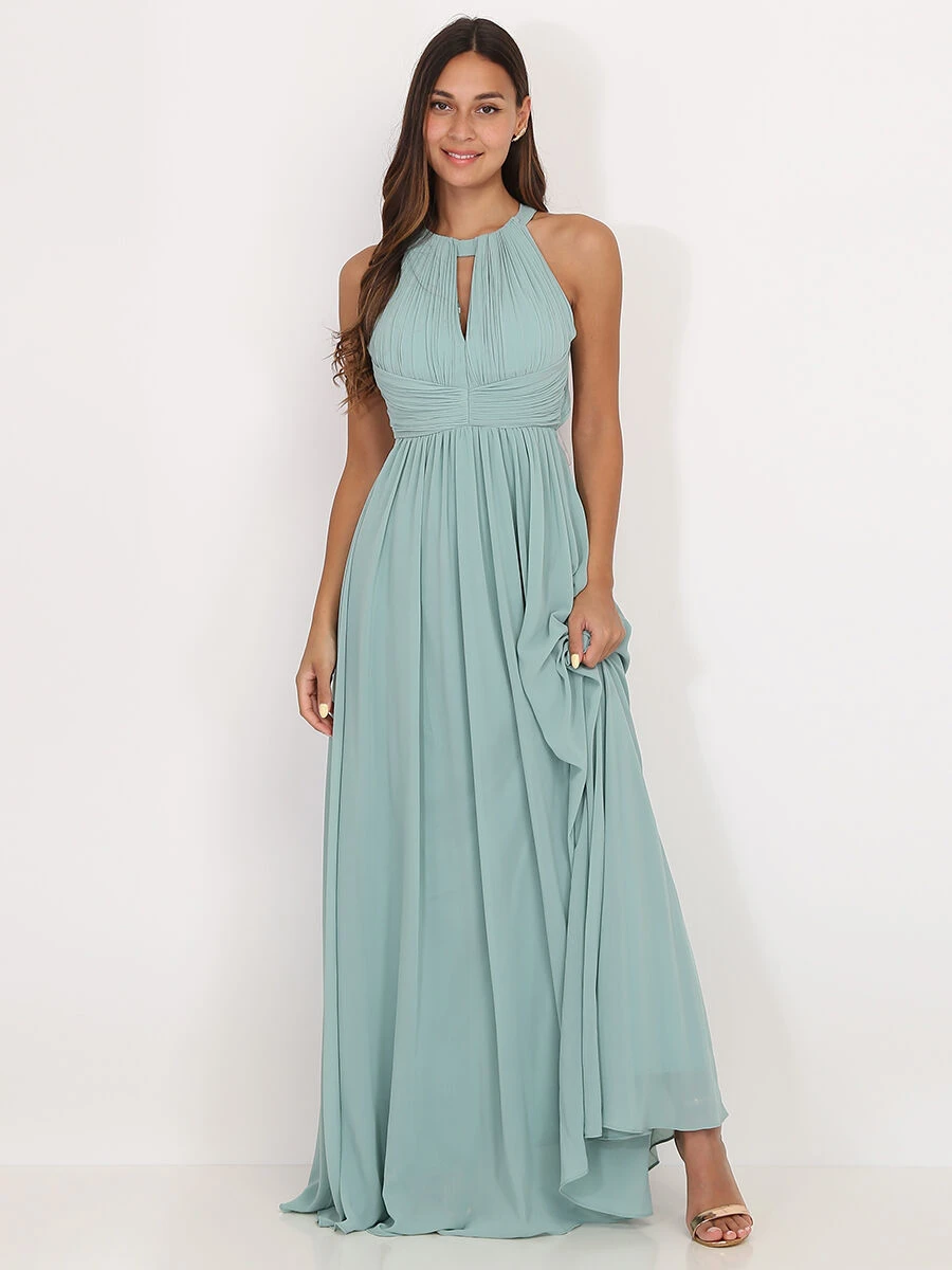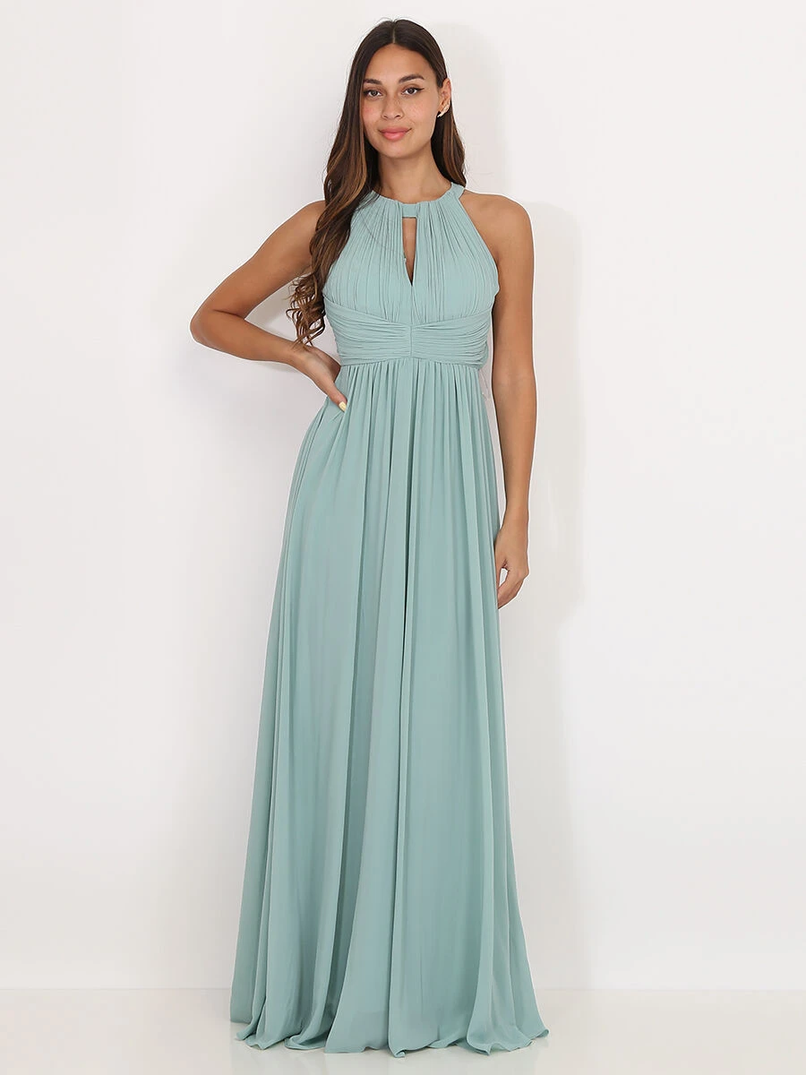 Robe longue à col rond drapé ajouré en V sur le buste.