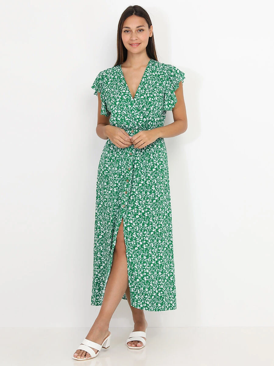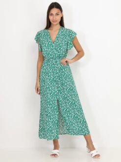 Robe longue fendue à imprimé floral.
