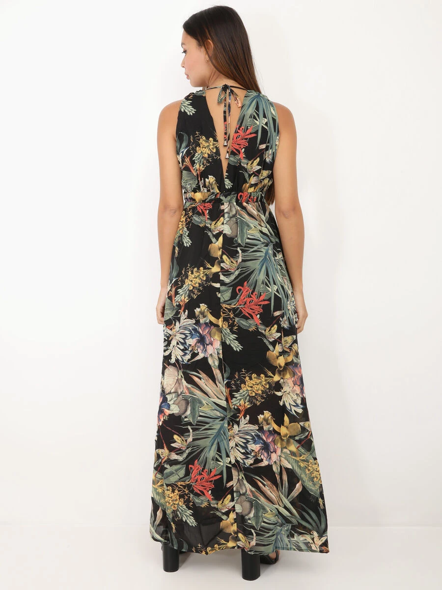 Robe longue à imprimé fleurs tropicales.