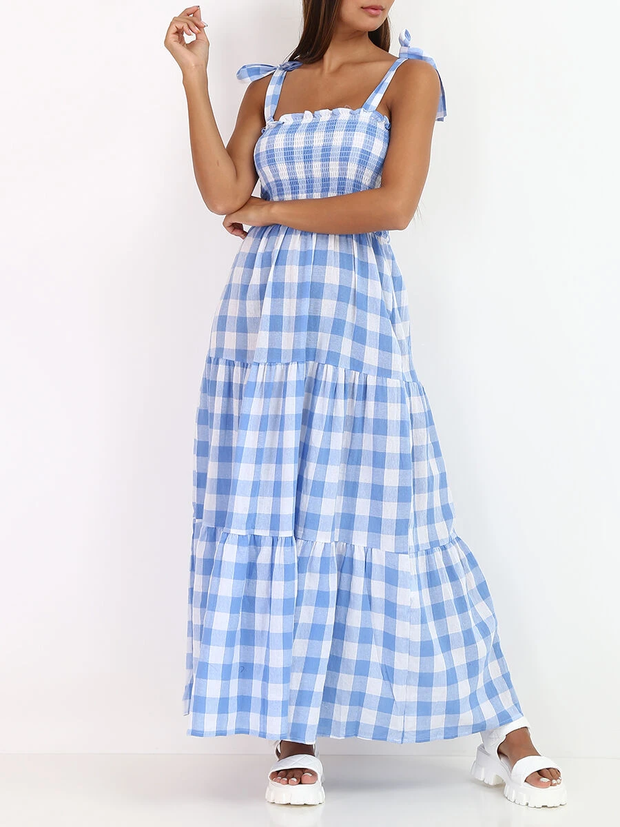 Robe longue à volants à imprimé vichy.