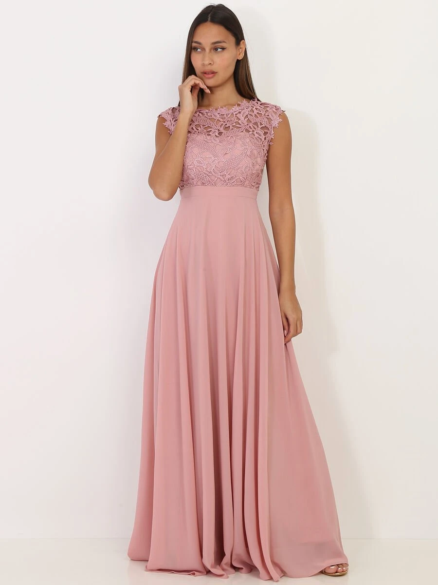 Robe longue sans manches à dentelle sur le buste
