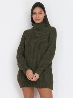 Robe pull courte en maille côtelée dotée de manches ballon.