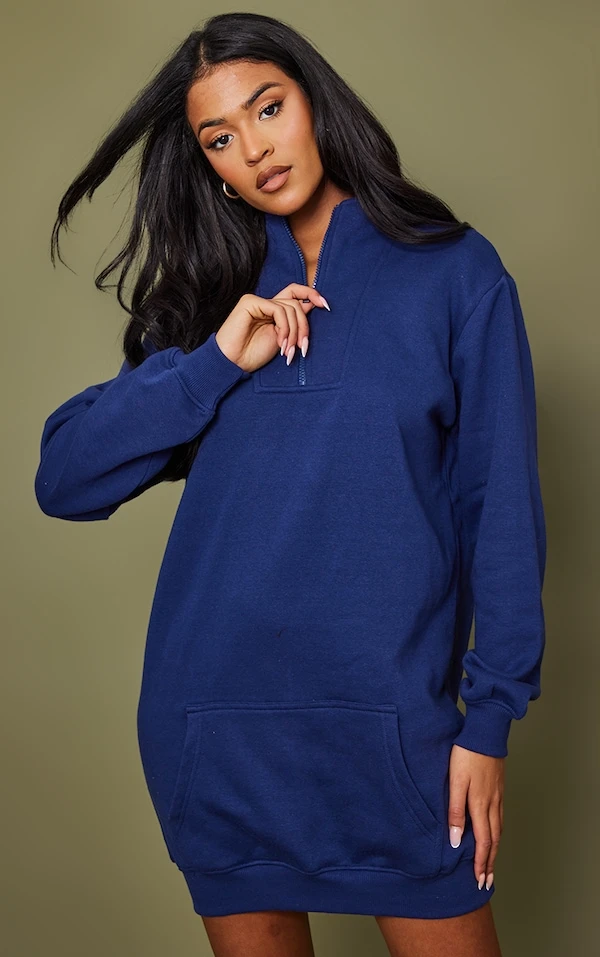 In love de cette robe ! Sa matière en sweat est ultra cosy et on adore sa couleur bleu marine et son zip. On vous conseille de la porter avec une paire de baskets pour rejoindre les copines en ville. Journée shopping en vue !