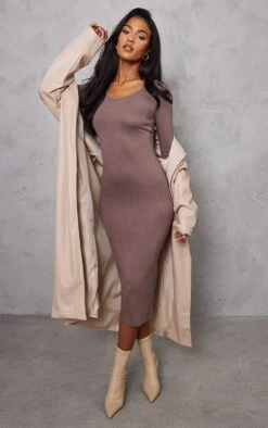 Tall Robe longue café au lait foncé en jersey à manches longues