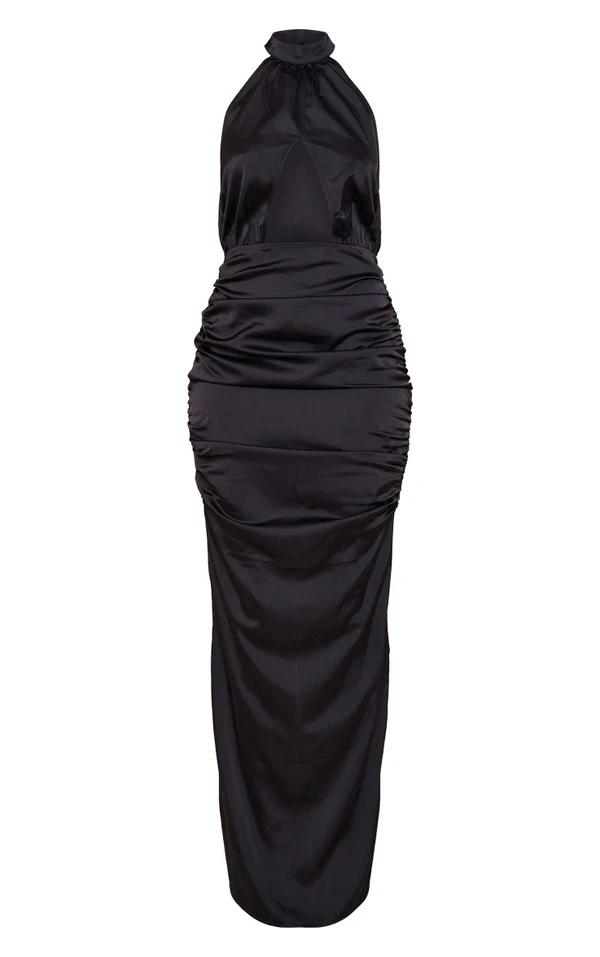 Tall Robe longue décolletée satinée froncée noire
