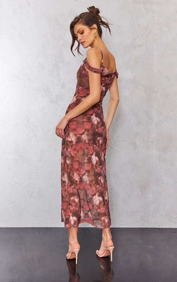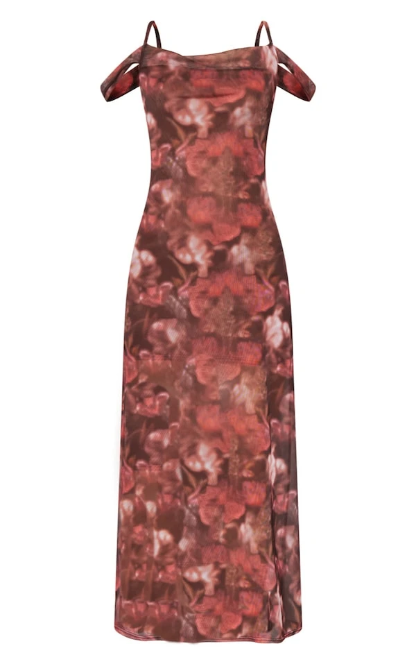 Tall Robe longue fleurie rose à col bénitier