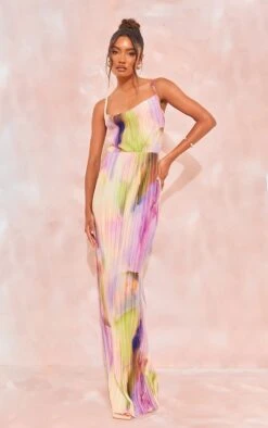 Tall Robe longue plissée violette à imprimé aquarelle et bretelles