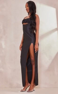 Coup de coeur sur la coupe longue de cette robe. Avec sa matière satinée, sa couleur noire indémodable et son design froncé sur le devant, on l’adore. Portez cette robe avec une paire de mules et quelques accessoires pour vous démarquer avec un max de style en soirée !
