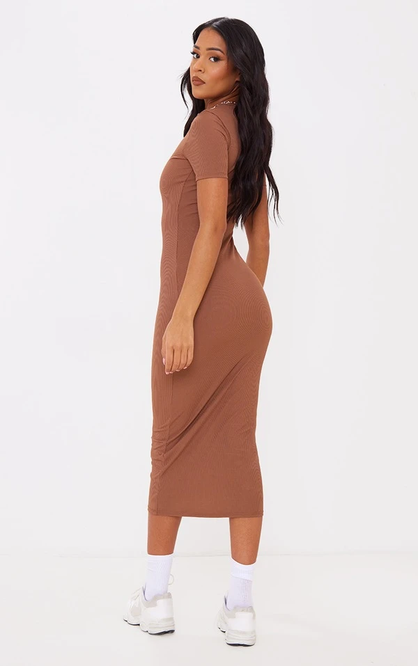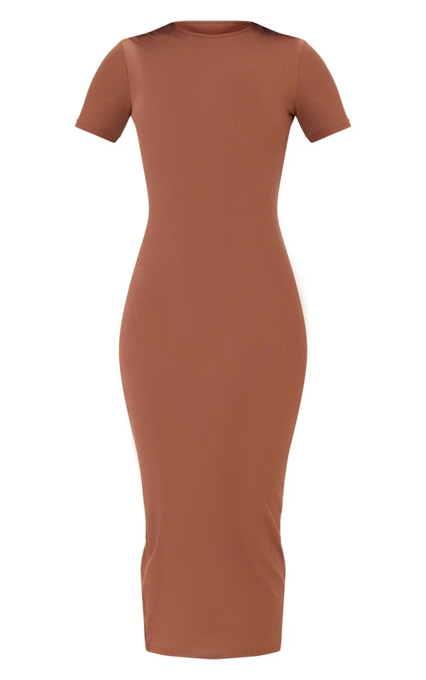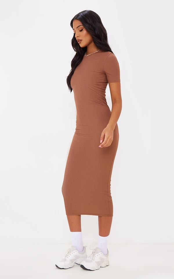 Tall Robe mi-longue côtelée chocolat à col rond
