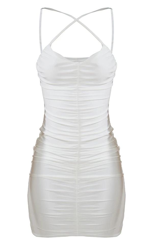 Tall Robe moulante blanche à devant croisé et lanières