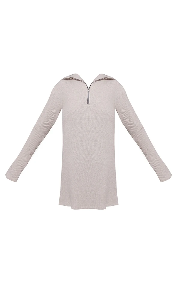 Tall Robe pull oversize beige côtelée à col montant et demi zip