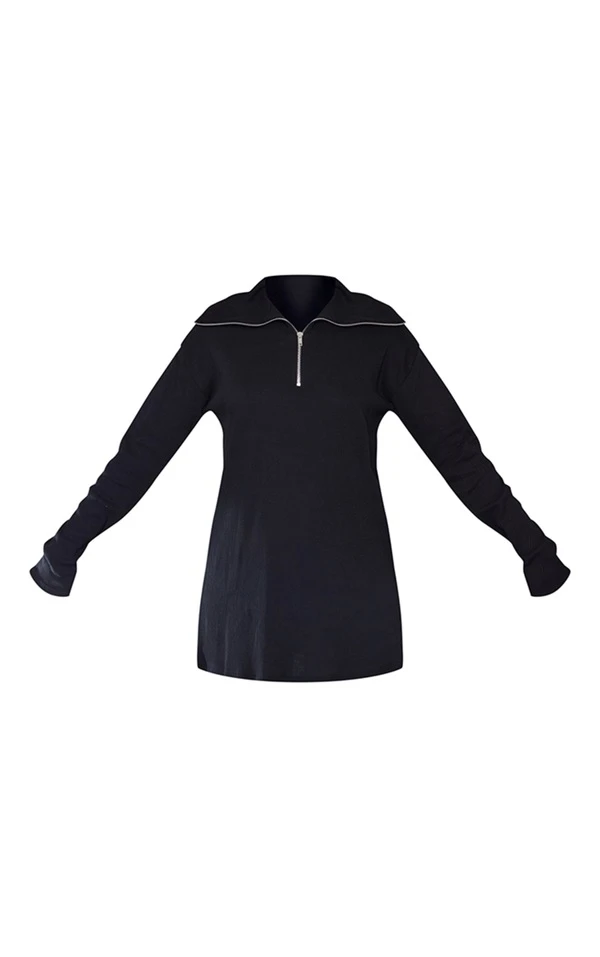Tall Robe pull oversize noire côtelée à col montant et demi zip